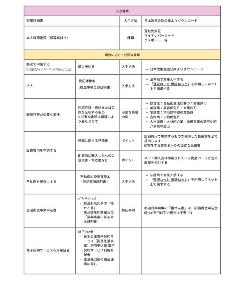 まずは、日本政策金融公庫に融資の相談をすることをお勧めいたします。融資申請に必要な書類だけでなく、用意したほうがいい参考資料などのアドバイスももらえます。その後、必要書類の作成に移ります。