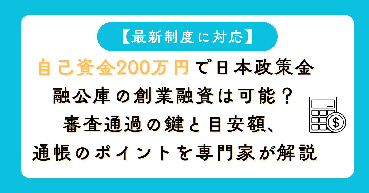 - 自己資金200万円でも、日本政策金融公庫の創業融資は十分に可能