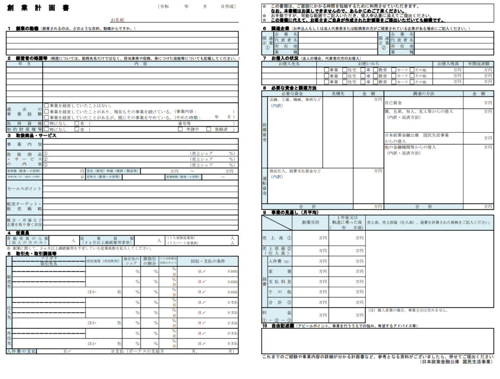 日本政策金融公庫の公式フォーマット
