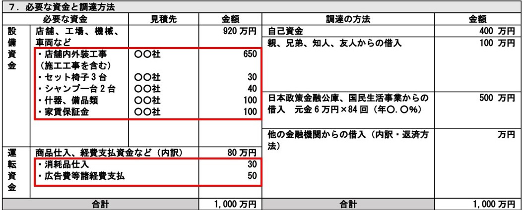 | <OK例> 設備資金・運転資金ともに内容が具体的に記入されており、内訳がわかりやすい。 ![]() |