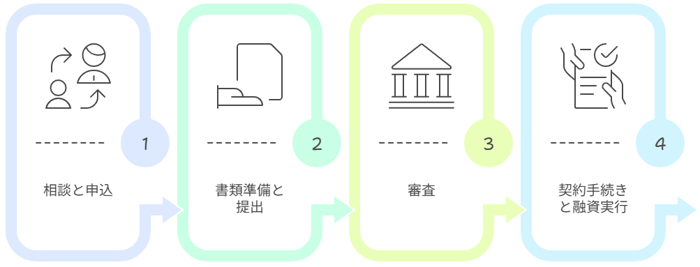 公庫の追加融資の申込~入金までの流れは、以下のようになります。