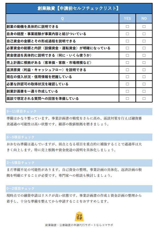 不安がある場合は、早めに専門家へ相談することで、審査通過率と開業後の安定性を高めることができます。弊社コマサポは、創業計画書の書き方から面談対策、融資を受けた後のアドバイスまでワンストップでサポート可能です。まずは無料相談にお問合せ下さい。