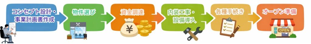 ここでは、美容室開業までの流れをステップごとに分けて解説していきます。