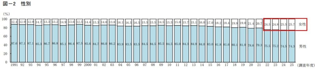 公庫が2025年12月に実施した「新規開業実態調査」によると、女性の新規開業者は毎年増加傾向にあり、開業場所も「自宅の一室」が3年連続で増加しています。