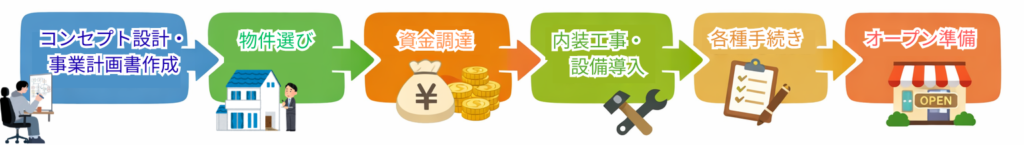 内装工事や各種手続きが整ったら、本格的なオープン準備を行います。